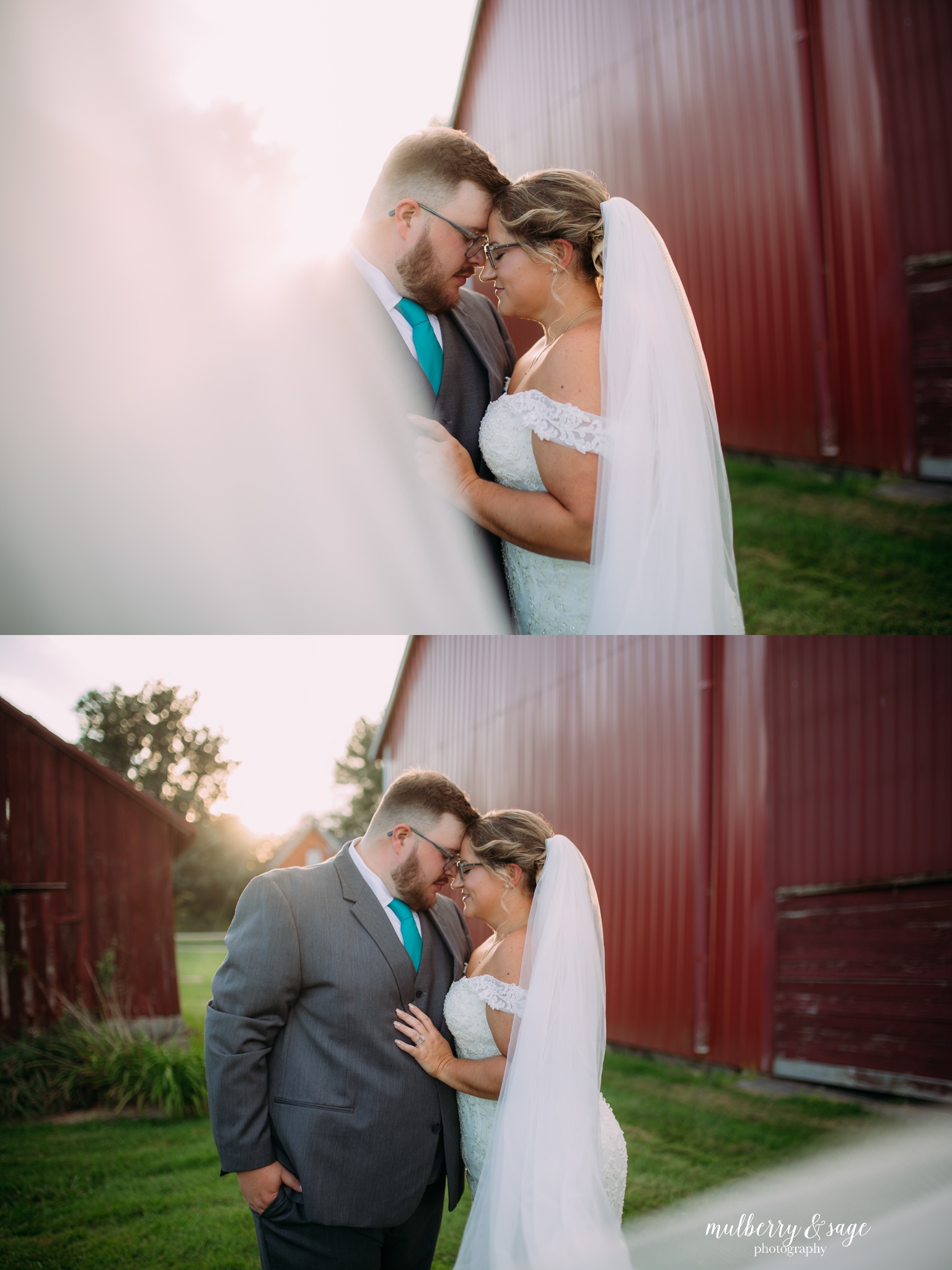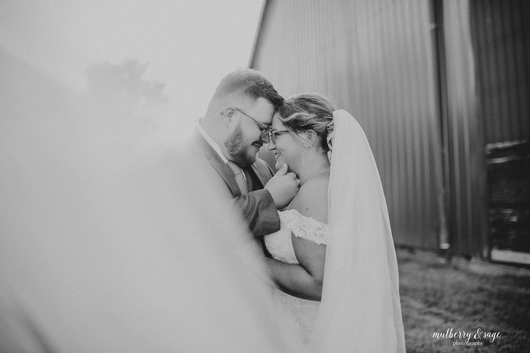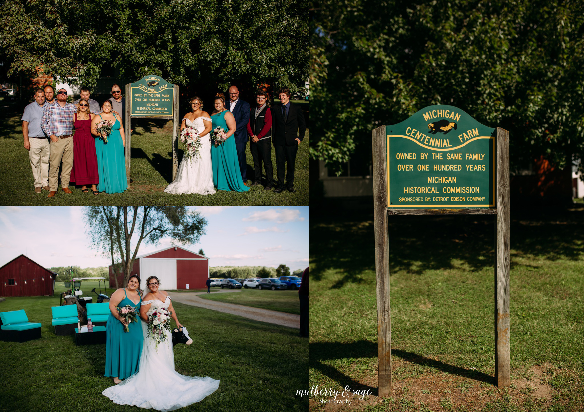 The real magic happened when we moved to their family’s historic farm for portraits. As a Michigan farm wedding photographer, there’s nothing quite like capturing love against the backdrop of a working farm that’s been in operation for over 100 years. That weathered farm sign telling the story of generations, the rustic barns, and the fields created the most authentic and meaningful setting for their photos. Every corner held memories and stories that made this location incredibly special to document.