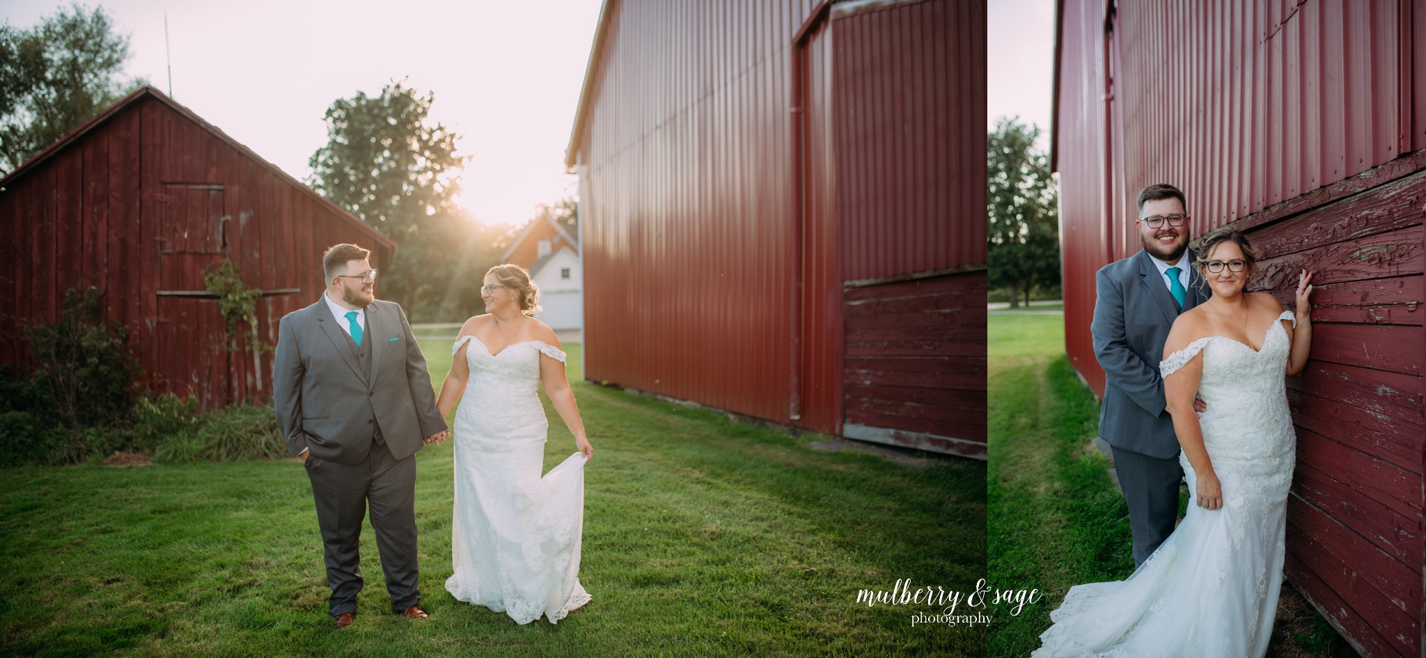 The venue itself was like something out of a fairytale – a family friend’s working farm that has hosted a few weddings over the years, and honestly, we can see why couples keep choosing this spot. Amy and Rob exchanged vows right between two rustic barns, with the perfect natural backdrop that only Michigan can provide.