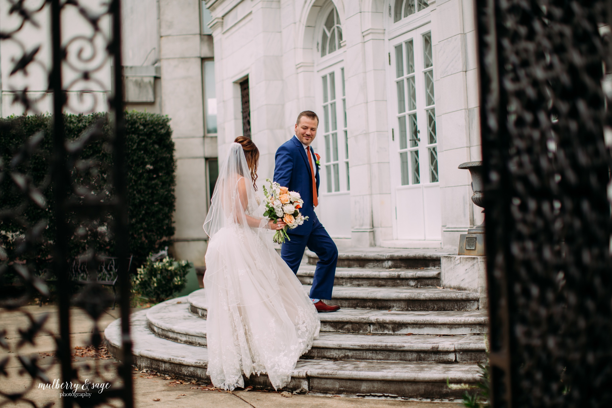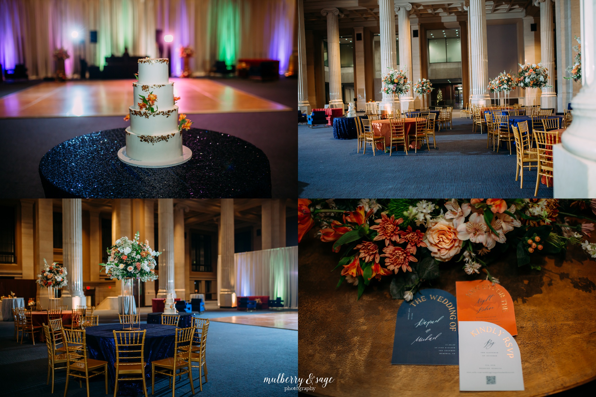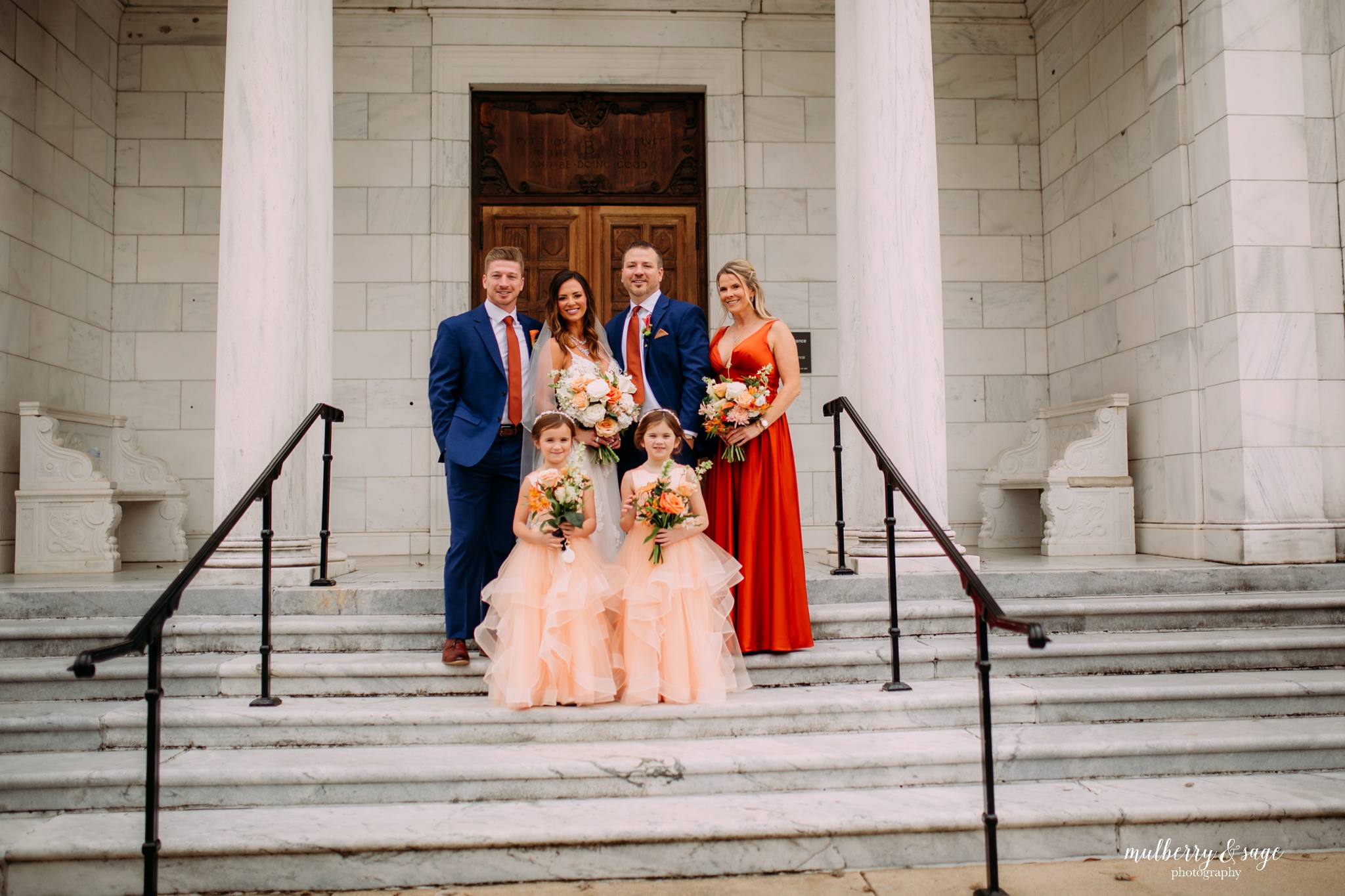 There’s something undeniably magical about weddings in Memphis. Maybe it’s the blend of history and modern charm, or the soulful heartbeat of the city itself—but The Columns elevates that magic to a whole new level. With its soaring marble pillars, sweeping staircases, and timeless architectural details, it was the perfect setting for a wedding that was both stylish and deeply intimate. From the moment guests stepped through the grand entrance, it was clear that every detail of this day had been intentionally designed. The couple chose a rich, perfectly coordinated color palette—warm neutrals with subtle touches of navy and muted tangerine—that complimented the venue’s classic interiors beautifully. Even in such an impressive space, the atmosphere felt warm, inviting, and personal. But what made this wedding truly unforgettable wasn’t just the stunning florals, the glowing candlelit tables, or the incredible natural light pouring through the arched windows. It was the love story at the center of it all—a story of two people joining not only their lives, but their family.